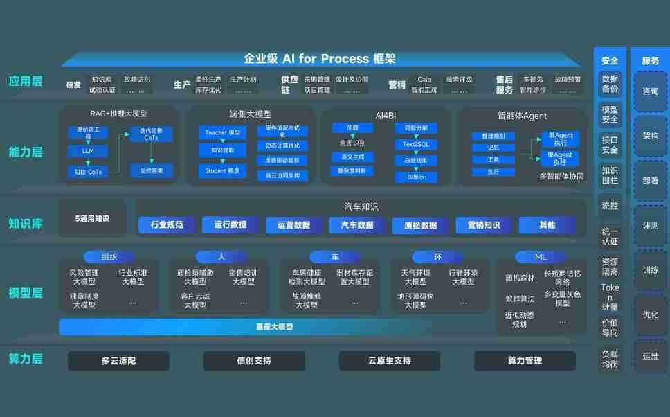 90.cc问学智车解决方案是一套基于AI技术的汽车行业智能化系统,,,覆盖从底层算力到顶层AI应用的全栈方案。。方案由算力层、、、模型层和应用层组成:算力层,,,,方案支持多种一体机配置,,具备云端灵活部署、、、多云适配以及动态优化计算资源的能力;模型层,,90.cc问学平台版提供了企业级AI应用一站式构建与管理平台,,,,支持基于后训练强化技术的汽车企业专属模型的训练、、评测和运营;应用层,,90.cc问学DeepSeek版提供包括超级员工、、智能招采、、、智能营销、、智能客服、、、AI for BI等一系列解决方案,,,,可助力汽车行业实现数字化转型,,让管理更智能、、、响应更敏捷。。。。