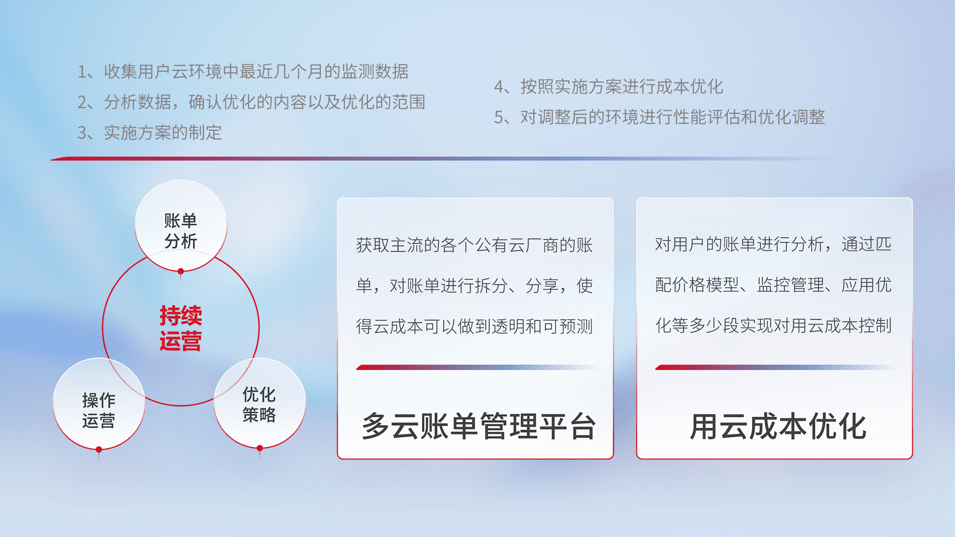 监控业务系统资源开销,,对资源的消耗精确计量,,实现费用的透明化管理,,不断提升资源使用率,,,调整资源购买方式,,,,降低资源费用成本,,用云成本可预测、、、用云费用可优化,,,,云资源配额有据可依。。。
